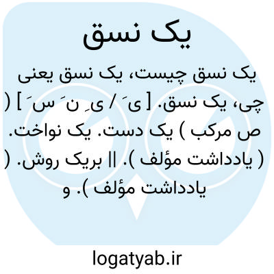یک نسق. [ ی َ / ی ِ ن َ س َ ] ( ص مرکب ) یک دست. یک نواخت. ( یادداشت مؤلف ). || بریک روش. ( یادداشت مؤلف ). و رجوع به یک نواخت شود.