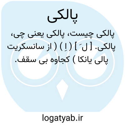 (در سانسکریت پالی یانکا به معنی کجاوۀ بی سقف) اتاقکی چوبین، با کف و سطحی اندکی قوس دار به ابعاد تقریبی ۱×۱متر، با ارتفاعی حدود۱.۵ متر. پالکی ها را به دو طرف استر یا یابو می بستند و دو مسافر هم وزن، هریک بر طرفی، می نشستند که به آن ها هم پالکی می گفتند و امروزه مفهوم هم عقیده، و هم طبقه دارد. در پالکی یا زنان می نشستند تا از طوفان و آفتاب و باران و دیدگان نامحرم در امان باشند، یا کاروانیان بارهای قیمتی خود را در آن جای می دادند. در زمستان، مسافران می توانستند منقلی آتش با خود به درون پالکی ببرند. در خوابگزاری ها، پالکی به بزرگی و منفعت تعبیر شده است.