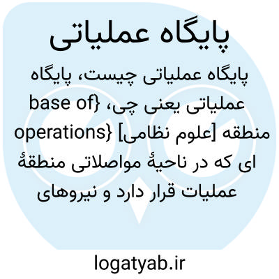 {base of operations} [علوم نظامی] منطقه ای که در ناحیۀ مواصلاتی منطقۀ عملیات قرار دارد و نیروهای نظامی عملیات آفندی خود را از آنجا شروع می کنند