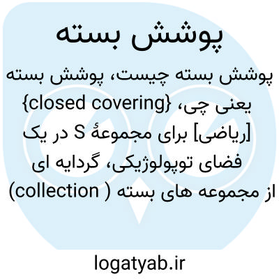{closed covering} [ریاضی] برای مجموعۀ S در یک فضای توپولوژیکی، گردایه ای (collection ) از مجموعه های بسته که اجتماع آنها شامل S باشد