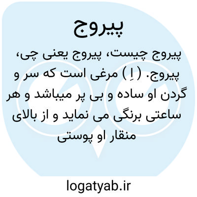 پیروج. ( اِ ) مرغی است که سر و گردن او ساده و بی پر میباشد و هر ساعتی برنگی می نماید و از بالای منقار او پوستی مانندخرطوم فیل آویخته است و فیلمرغ همانست. ( برهان ). صاحب انجمن آرا گوید آن غیر بوقلمون است. و صاحب جهانگیری گوید: مرغی است مأکول اللحم که در جنگلهای پرتقال و مغرب زمین بهم رسد و آن را پیل مرغ نیز خوانند. ( جهانگیری ). اما این نام مفرس از زبان پرتقالی است چه بوقلمون را اول بار پرتقالیها پس از فتح کردن بعض ازبنادر هند به هندیها دادند و خود پرتقالیها هم مرغ مذکور را از کشور پروی آمریکا به اروپا برده اند. از این جهت آنرا پرو نامیدند که به پیروج مفرس شده. مرغ مذکور را چون گوشت گلو منقارش برنگ مختلف درمی آید در ایران بوقلمون گفته اند و در زمان تألیف فرهنگ جهانگیری ( عهد صفویه ) در ایران نبوده است که نامی داشته باشد. و جان ملکم سفیر انگلیس که در زمان فتحعلیشاه ( جلوس 1212 ) در ایران بوده در سفرنامه خود می نویسد: «چون به کازرون رسیدیم شنیدیم در دو فرسخی شهر در دهی کسی یک جفت مرغ دارد که مثل مردان ریش دارند و عربی حرف میزنند. یک صاحب منصب ِ همراه من با وجود خستگی حاضر شد برود و مرغها را ببیند. رفت و برگشت و خندان گفت آن دو مرغ بوقلمون است که از یک کشتی شکسته هندیها در خلیج فارس بدست یک کازرونی افتاده و به آن ده آورده است، گوشت آویزان زیر گلوی او را ریش میدانند و غات غات خشن ویرا زبان عربی ». ( فرهنگ نظام ).