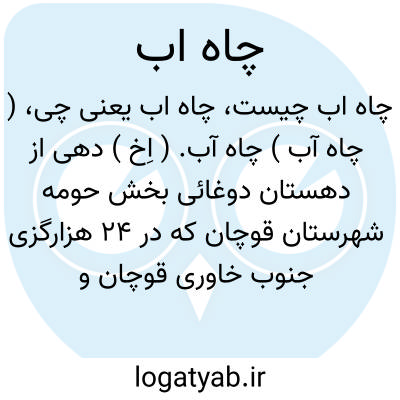 ( چاه آب ) چاه آب. ( اِخ ) دهی از دهستان دوغائی بخش حومه شهرستان قوچان که در 24 هزارگزی جنوب خاوری قوچان و 14 هزارگزی جنوب شوسه عمومی قوچان به مشهد واقع شده، کوهستانی و معتدل است و 53 تن سکنه ترک و کرد و فارس دارد.آبش از چشمه، محصولش غلات و شغل اهالی زراعت است. راهش مالرو میباشد. ( از فرهنگ جغرافیایی ایران ج 9 ).