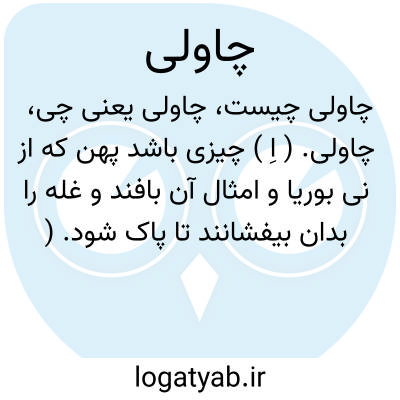 چاولی. ( اِ ) چیزی باشد پهن که از نی بوریا و امثال آن بافند و غله را بدان بیفشانند تا پاک شود. ( برهان ). غله برافشان. ( جهانگیری ) ( انجمن آرا ) ( آنندراج ). افزاری که از نی بوریا سازند و بدان غله افشانند. ( ناظم الاطباء ). ظرفی بافته از نی یا مانند آن برای پیش زدن و پاک کردن غله ( فرهنگ نظام ). چچ نیز گویند. ( جهانگیری ). چِل. ( در لهجه اهالی فیض آباد محولات بخش تربت حیدریه ):