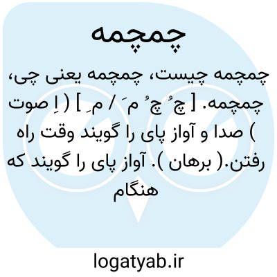 چمچمه. [ چ ُ چ ُ م َ / م ِ ] ( اِ صوت ) صدا و آواز پای را گویند وقت راه رفتن.( برهان ). آواز پای را گویند که هنگام راه رفتن برآید وشلپوی و شکاشک و شکک نیز گویند. ( جهانگیری ). آوازپای را گویند که وقت راه رفتن برآید و آن را شلپوی نیز گویند. ( انجمن آرا ) ( آنندراج ). صدا و آواز پای در هنگام راه رفتن. ( ناظم الاطباء ). شکشک: