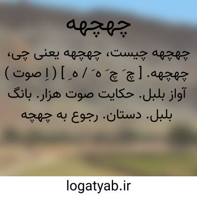 (چَ چَ هِ ) (اِصت. ) = چهچه: ۱ - آواز خواندن بلبل و پرندگان خوش آواز. ۲ - تحریر دادن صدا.