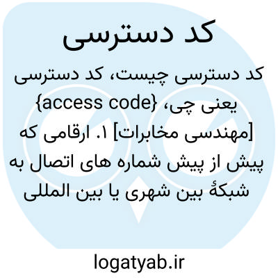 {access code} [مهندسی مخابرات] 1. ارقامی که پیش از پیش شماره های اتصال به شبکۀ بین شهری یا بین المللی گرفته می شود تا کاربر به شرکت ارائه دهندۀ خدمات مورد نظر متصل شود و بعد از این اعداد، شمارۀ مخاطب گرفته می شود 2. در ساختمان هایی که دارای تلفن مرکزی هستند، رقمی...
