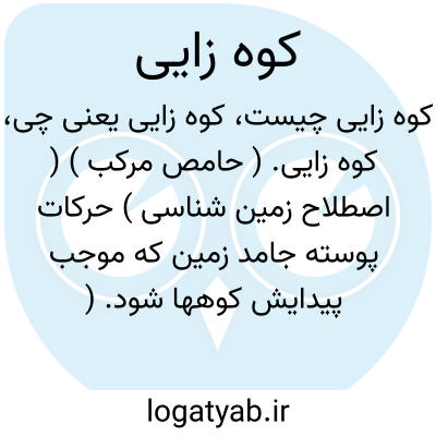 کوه زایی. ( حامص مرکب ) ( اصطلاح زمین شناسی ) حرکات پوسته جامد زمین که موجب پیدایش کوهها شود. ( فرهنگ فارسی معین ).