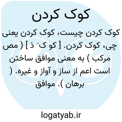 ( مصدر ) ۱ - آهنگ دادن ساز ها میزان کردن آلات موسیقی. ۲ - منظم کردن حرکات دستگاه ساعت بوسیل. پیچاندن فنر مخصوص. ۳ - بانگ زدن ( در زبان هروی مستعمل بود ): وی میگفتی که بخیابان هری کوک کنم یعنی بانگ زنم.... ۴ - متغیر ساختن عصبانی کردن. ۵ - تحریک کردن وادار کردن بعملی: او را کوک کردند برود کشتی بگیرد. ۶ - بر سر حرف آوردن.