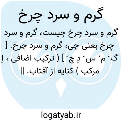 گرم و سرد چرخ. [ گ َ م ُ س َ دِ چ َ ] ( ترکیب اضافی، اِ مرکب ) کنایه از آفتاب. || کنایه از ماه. ( برهان ) ( انجمن آرا ). || کنایه از حوادث فلکی. ( برهان ). کنایه از نیک و بد است که از افلاک رسد. ( انجمن آرا ). رجوع به گرم و سرد شود.