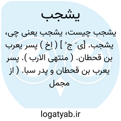 یشجب. [ی َ ج ُ ] ( اِخ ) پسر یعرب بن قحطان. ( منتهی الارب ). پسر یعرب بن قحطان و پدر سبا. ( از مجمل التواریخ والقصص ص 15 و 146 ). و رجوع به حبیب السیر چ خیام ص 263 شود.