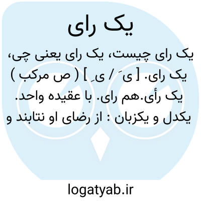 یک رای. [ ی َ / ی ِ ] ( ص مرکب ) یک رأی.هم رای. با عقیده واحد. یکدل و یکزبان: