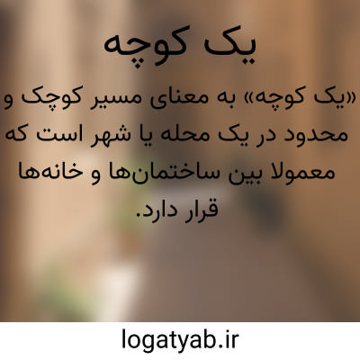 «یک کوچه» به معنای مسیر کوچک و محدود در یک محله یا شهر است که معمولاً بین ساختمان‌ها و خانه‌ها قرار دارد. این مسیر نسبت به خیابان اصلی کوتاه‌تر و باریک‌تر است و بیشتر برای رفت‌وآمد محلی یا دسترسی به خانه‌ها و مغازه‌ها استفاده می‌شود.