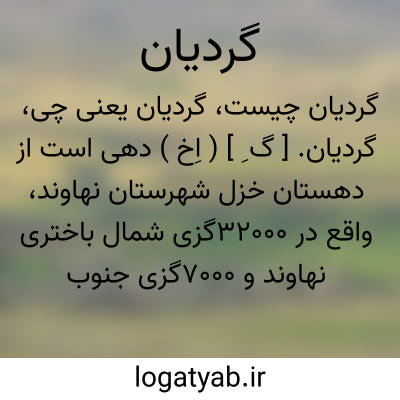 گردیان. [ گ ِ ] ( اِخ ) دهی است از دهستان خزل شهرستان نهاوند، واقع در 32000گزی شمال باختری نهاوند و 7000گزی جنوب باختری راه شوسه نهاوند به کرمانشاه. هوای آن سردسیر و دارای 804 سکنه است. آب آنجا از رودخانه تأمین میشود. محصول آن غلات، توتون، چغندر و لبنیات است. شغل اهالی زراعت و گله داری و راه آن مالرو است. رودخانه تویسرکان در دوهزارگزی این ده به رودخانه گاماسیاب متصل میشود. دارای دبستان میباشد. ( از فرهنگ جغرافیایی ایران ج 5 ).