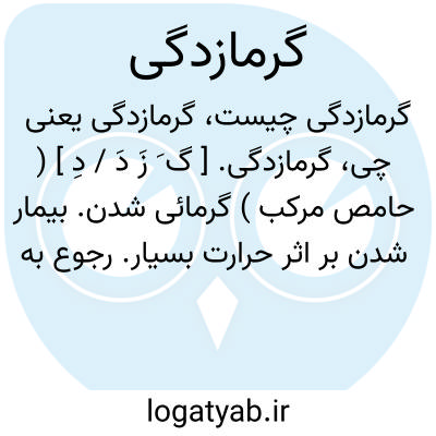 گرمازدگی. [ گ َ زَ دَ / دِ ] ( حامص مرکب ) گرمائی شدن. بیمار شدن بر اثر حرارت بسیار. رجوع به گرمائی شدن شود: و باز استاد ما گفتی خمار بنشاند و گرمازدگی را نیک بود [ یعنی فقاع و شلماب ] و دیگر نفعتی نیست از او. ( هدایةالمتعلمین ربیعبن احمدالاخوینی ).