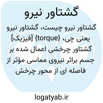 {torque} [فیزیک] گشتاور چرخشی اعمال شده بر جسم براثر نیروی مماسی مؤثر از فاصله ای از محور چرخش آن