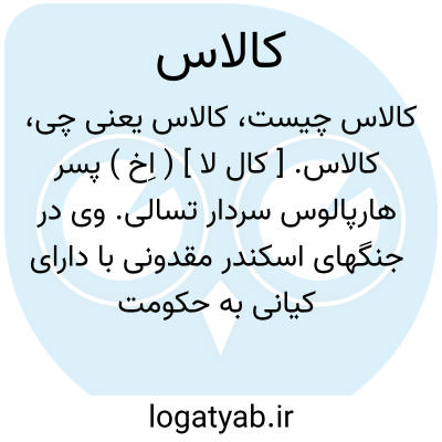 کالاس. [ کال لا ] ( اِخ ) پسر هارپالوس سردار تسالی. وی در جنگهای اسکندر مقدونی با دارای کیانی به حکومت ولایات مفتوحه منصوب میشده است. ( ایران باستان ج 2 ص 1243، 1246، 1247، 1260 و ج 3 ص 2024 ).