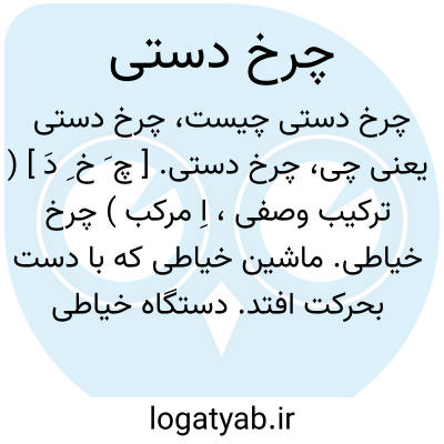 چرخ دستی. [ چ َ خ ِ دَ ] ( ترکیب وصفی، اِ مرکب ) چرخ خیاطی. ماشین خیاطی که با دست بحرکت افتد. دستگاه خیاطی بدون پایه که چرخ آن را با دست حرکت دهند. رجوع به چرخ خیاطی شود.