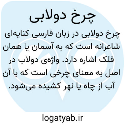 برای نمونه در بیت آورده‌شده: «زین چرخ دولابی ترا آمد گران خوابی ترا / فریاد از این عمر سبک زنهار از این خواب گران»؛ شاعر با استفاده از تعبیر «چرخ دولابی»، ناپایداری روزگار و گذران سریع عمر را به تصویر کشیده است؛ به این معنا که گردش آسمان پیوسته انسان را از بیداری به خواب و از شادی به غم می‌برد. بنابراین، این اصطلاح کنایه از آسمان و ناپایداری روزگار است.