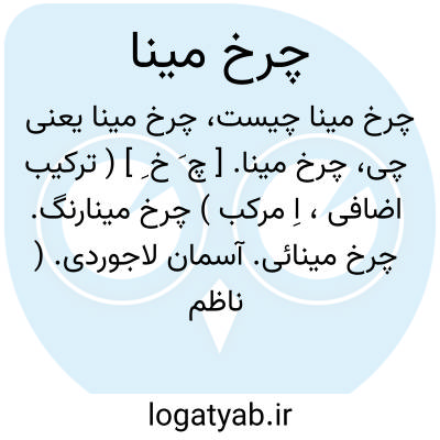 چرخ مینا. [ چ َ خ ِ ] ( ترکیب اضافی، اِ مرکب ) چرخ مینارنگ. چرخ مینائی. آسمان لاجوردی. ( ناظم الاطباء ). کنایه از فلک و آسمان. رجوع به چرخ و چرخ مینائی شود.