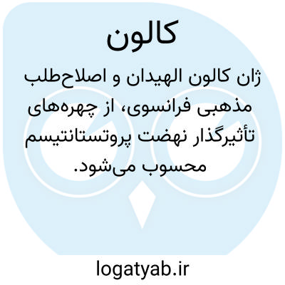 ژان - پیشوای نهضت مذهبی و رفرم فرانسه کرسی پادکاله در داستان بولونی - ف. ۱۵۶۴ م. ). وی مبلغ اصول عقاید [ رفرم ] در فرانسه و سویس بود. کالون در ژنو اقامت گزید ( ۱۵۴۱ ) و در آنجا جمهوریی دینی تاسیس کرد و همانجا در گذشت. کالون موجد فرقه ایست که بنام خود او کالوینیسم نامیده شده و پیروان او را اکالوینیست گویند.