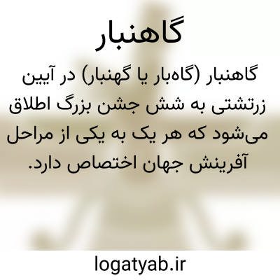 (یا: گَهَنبار) نام شش جشن بزرگ زَردُشتیان. هر یک از این جشن ها پنج روز به طول می کشد. آخرین روز جشن مهم ترین روز آن است و چهار روز نخست بیشتر ویژۀ مقدمات جشن است. در باور پیروان آیین زَردُشت، اَهورامَزدا جهان را در ۳۶۵ روز و در شش گاهنبار آفریده است. در نخستین گاهنبار (مَدیوزَرِم = میان بهار)، در روز دی به مهر، از اُردیبِهِشت ماه، آسمان آفریده شد. در گاهنبار دوم (مَدیوشَم = میان تابستان )، یعنی ۶۰ روز بعد، در روز دی به مهر، از تیر ماه آب آفریده شد. ۷۵ روز بعد، در گاهنبار سوم (پَدیشه = گردآوری غله )، در روز اَنیران، از شهریور ماه، زمین شکل گرفت. ۳۰ روز بعد، در چهارمین گاهنبار (اَیاسریم = بازگشت به خانه )، در انیران روز، از مهر ماه، گیاه رویید. هشت روز بعد، در گاهنبار پنجم (مَدیاریم = میان سال )، در بَهرام روز، از دی ماه، جانوران آفریده شدند و سرانجام ۷۵ روز بعد، در ششمین گاهنبار (هَمَسپَهمَدیم = حرکت همۀ سپاه )، در واپسین روز کبیسۀ سال، آفرینش انسان انجام گرفت. آخرین گاهنبار ویژۀ فَروَهرهای در گذشتگان است که در پایان و آغاز سال نو به خانه های زمینی خود سرمی کشند. از همین رو ست که در این گاهنبار در خانه ها آتش برپا می کنند و دود راه می اندازند تا فروهرها، با دیدن دود، دودمان خود را بازشناسند.