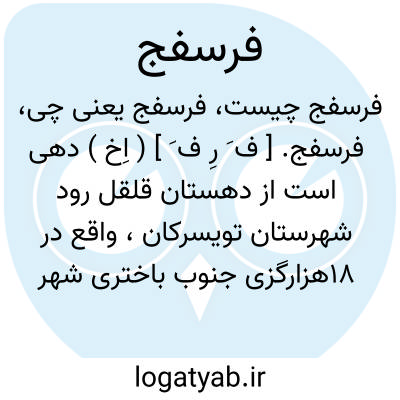 فرسفج. [ ف َ رِ ف َ ] ( اِخ ) دهی است از دهستان قلقل رود شهرستان تویسرکان، واقع در 18هزارگزی جنوب باختری شهر تویسرکان و 4هزارگزی جنوب راه شوسه تویسرکان به کرمانشاه و کنار رودخانه تویسرکان. ناحیه ای است جلگه ای، سردسیر و دارای 1516 تن سکنه. از قلقل رود مشروب میشود. محصولاتش غلات، پنبه، حبوب و انواع میوه است. اهالی به کشاورزی و گله داری گذران میکنند. از صنایع دستی زنان قالیچه بافی است. راه مالرو دارد. یک پل آجری در جنگ بین المللی اول روی قلقل رود بنا شده که راه شوسه جمیل آباد از روی آن میگذرد. دارای دبستان، دو مسجد، زیارتگاه، کاروانسرای شاه عباسی و 10 باب دکان میباشد. ( از فرهنگ جغرافیایی ایران ج 5 ).