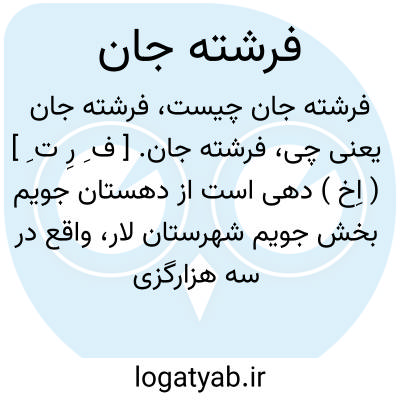 فرشته جان. [ ف ِ رِ ت ِ ] ( اِخ ) دهی است از دهستان جویم بخش جویم شهرستان لار، واقع در سه هزارگزی جنوب باختر جویم.ناحیه ای است جلگه ای، گرمسیر و دارای 184 تن سکنه است. از قنات و چاه مشروب میشود. محصولاتش غلات، پنبه و خرما است. اهالی به کشاورزی و قالی بافی گذران میکنند. راه فرعی دارد. ( از فرهنگ جغرافیایی ایران ج 7 ).