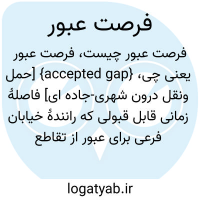 {accepted gap} [حمل ونقل درون شهری-جاده ای] فاصلۀ زمانی قابل قبولی که رانندۀ خیابان فرعی برای عبور از تقاطع و ورود به خیابان اصلی صرف می کند