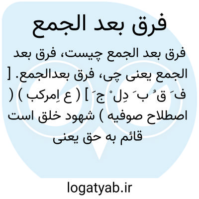 فرق بعدالجمع. [ ف َ ق ُ ب َ دِل ْ ج َ ] ( ع اِمرکب ) ( اصطلاح صوفیه ) شهود خلق است قائم به حق یعنی حق را در تمام موجودات و مخلوقات مشاهده نماید که مقام بقاء باﷲ است. ( از فرهنگ مصطلحات عرفا و شعرا ).