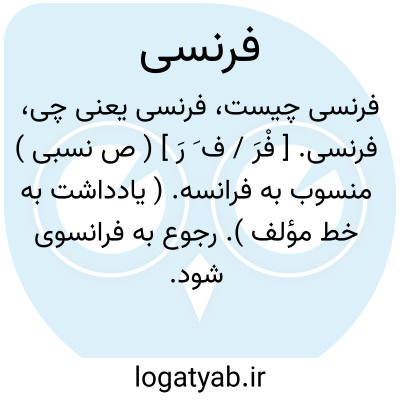 فرنسی. [ فْرَ / ف َ رَ ] ( ص نسبی ) منسوب به فرانسه. ( یادداشت به خط مؤلف ). رجوع به فرانسوی شود.
