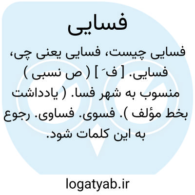 فسایی. [ ف َ ] ( ص نسبی ) منسوب به شهر فسا. ( یادداشت بخط مؤلف ). فسوی. فساوی. رجوع به این کلمات شود.