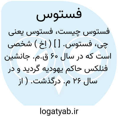 فستوس. [ ] ( اِخ ) شخصی است که در سال 60 ق.م. جانشین فنلکس حاکم یهودیه گردید و در سال 26 م. درگذشت. ( از قاموس کتاب مقدس ).