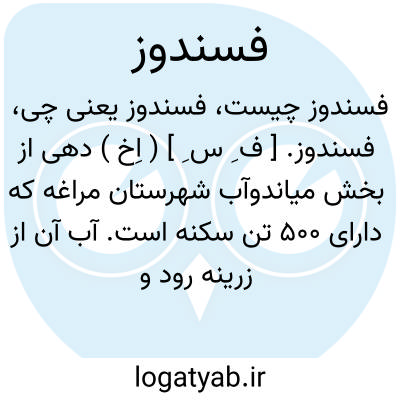 فسندوز. [ ف ِ س ِ ] ( اِخ ) دهی از بخش میاندوآب شهرستان مراغه که دارای 500 تن سکنه است. آب آن از زرینه رود و محصول عمده اش غله، پنبه، چغندر و کرچک است. ( از فرهنگ جغرافیایی ایران ج 4 ).