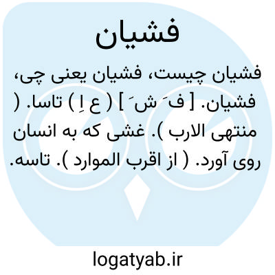 فشیان. [ ف َ ش َ ] ( ع اِ ) تاسا. ( منتهی الارب ). غشی که به انسان روی آورد. ( از اقرب الموارد ). تاسه. رجوع به غشی و تاسه شود.
