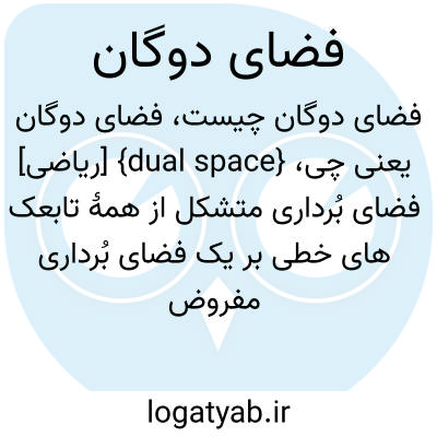 {dual space} [ریاضی] فضای بُرداری متشکل از همۀ تابعک های خطی بر یک فضای بُرداری مفروض