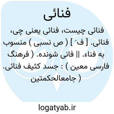 فنائی. [ ف َ ] ( ص نسبی ) منسوب به فناء. || فانی شونده. ( فرهنگ فارسی معین ): جسد کثیف فنائی. ( جامعالحکمتین ناصرخسرو ).