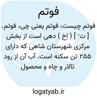 فوتم. [ ت َ ] ( اِخ ) دهی است از بخش مرکزی شهرستان شاهی که دارای 255 تن سکنه است. آب آن از رود تالار و چاه و محصول عمده اش برنج، کنف، پنبه، کنجد، صیفی و غله است. ( از فرهنگ جغرافیایی ایران ج 3 ).