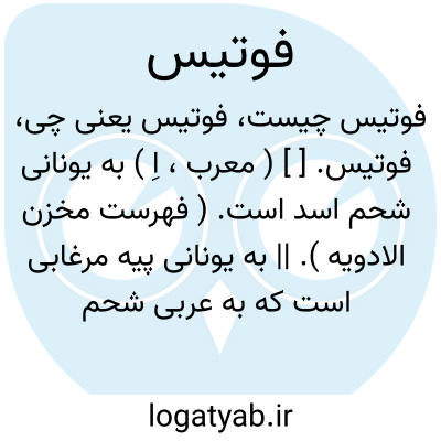 فوتیس. [ ] ( معرب، اِ ) به یونانی شحم اسد است. ( فهرست مخزن الادویه ). || به یونانی پیه مرغابی است که به عربی شحم الاذر نامند. ( از حکیم مؤمن ).