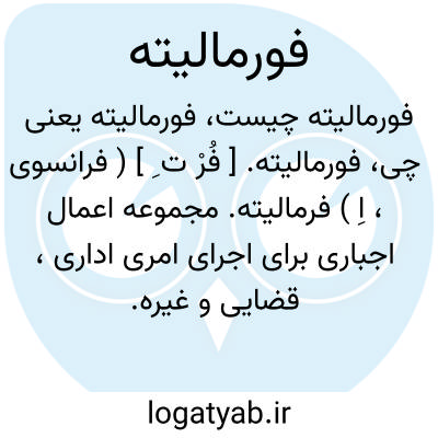 فورمالیته. [ فُرْ ت ِ ] ( فرانسوی، اِ ) فرمالیته. مجموعه اعمال اجباری برای اجرای امری اداری، قضایی و غیره. آیین تشریفاتی. || ظاهرسازی. ( فرهنگ فارسی معین ). درست کردن وضع ظاهری چیزی، چنانکه عیب آن به نظر نیاید.