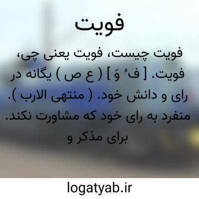فویت. [ ف ُ وَ ] ( ع ص ) یگانه در رای و دانش خود. ( منتهی الارب ). منفرد به رای خود که مشاورت نکند. برای مذکر و مؤنث به همین صیغه استعمال شود. ( از اقرب الموارد ).