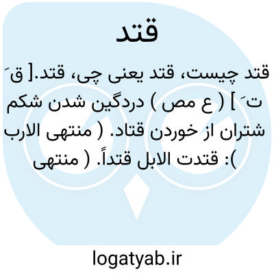 قتد.[ ق َ ت َ ] ( ع مص ) دردگین شدن شکم شتران از خوردن قتاد. ( منتهی الارب ): قتدت الابل قتداً. ( منتهی الارب ).