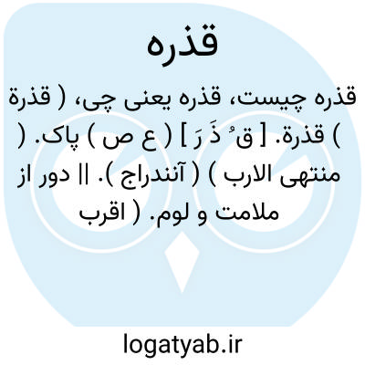 ( قذرة ) قذرة. [ ق ُ ذَ رَ ] ( ع ص ) پاک. ( منتهی الارب ) ( آنندراج ). || دور از ملامت و لوم. ( اقرب الموارد ) ( منتهی الارب ) ( آنندراج ).