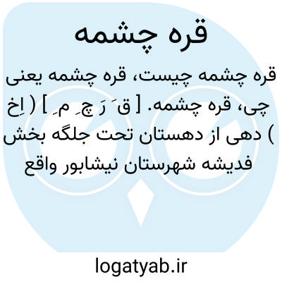 قره چشمه. [ ق َ رَ چ ِ م ِ ] ( اِخ ) دهی از دهستان تحت جلگه بخش فدیشه شهرستان نیشابور واقع در 21 هزارگزی شمال فدیشه. موقع جغرافیایی آن جلگه و معتدل است. سکنه آن 101 تن. آب آن از قنات و محصول آن غلات. شغل اهالی زراعت و کرباس بافی است. راه مالرو دارد. ( از فرهنگ جغرافیایی ایران ج 9 ).