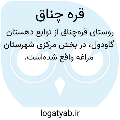 قره چناق. [ ق َ رَ چ َ ] ( اِخ ) دهی از دهستان گاودول بخش مرکزی شهرستان مراغه واقع در 28 هزارگزی جنوب مراغه و 5 هزارگزی خاور شوسه مراغه به میاندوآب. موقع جغرافیایی آن کوهستانی و معتدل مالاریایی. سکنه آن 158 تن. آب آن از چشمه و محصول آن غلات و چغندر. شغل اهالی زراعت و صنایع دستی آنان جاجیم بافی است. راه مالرو دارد. ( از فرهنگ جغرافیایی ایران ج 4 ).