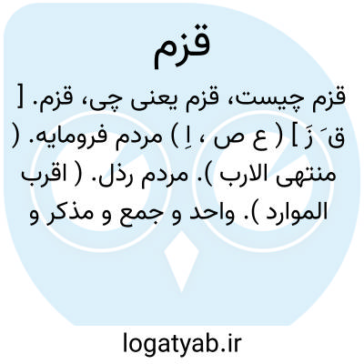 قزم. [ ق ُ زُ ] ( ع ص ) مرد فرومایه. ( منتهی الارب ). گویند: رجل قُزُم. ( اقرب الموارد ). || شتر هیچکاره. ( منتهی الارب ). رجوع به قَزِم شود. || ج ِ قَزَم.( منتهی الارب ) ( اقرب الموارد ). رجوع به قَزَم شود.