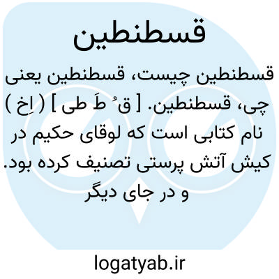 قسطنطین. [ ق ُ طَ طی ] ( اِخ ) نام کتابی است که لوقای حکیم در کیش آتش پرستی تصنیف کرده بود. و در جای دیگر به جای لوقا، ابوالقاسم نوشته بود، واﷲاعلم. ( از برهان ). معین در حاشیه برهان آرد: چنین کتابی درفهرستهای کتب نیامده، و این معنی را از تخلیط مفهوم قسطا استخراج کرده اند. ( از حاشیه برهان چ معین ).