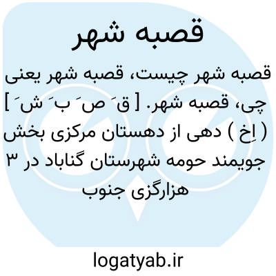 قصبه شهر. [ ق َ ص َ ب َ ش َ ] ( اِخ ) دهی از دهستان مرکزی بخش جویمند حومه شهرستان گناباد در 3 هزارگزی جنوب گناباد. موقع جغرافیایی آن جلگه و گرمسیر است. سکنه آن 3198 تن است. آب آن از قنات است. محصول آن غلات و زعفران و شغل اهالی زراعت است. راه اتومبیل رو دارد. ( از فرهنگ جغرافیایی ایران ج 9 ).