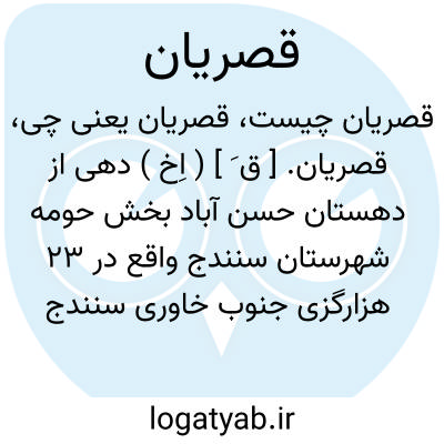 قصریان. [ ق َ ] ( اِخ ) دهی از دهستان حسن آباد بخش حومه شهرستان سنندج واقع در 23 هزارگزی جنوب خاوری سنندج و 10 هزارگزی جنوب خاوری شوسه سنندج به کرمانشاه. موقع جغرافیایی آن کوهستانی و هوای آن سردسیری است. سکنه آن 280 تن است. آب آن از چشمه و محصول آن غلات و مختصر توتون است. شغل اهالی زراعت و گله داری است. راه مالرو دارد. ( از فرهنگ جغرافیایی ایران ج 5 ).