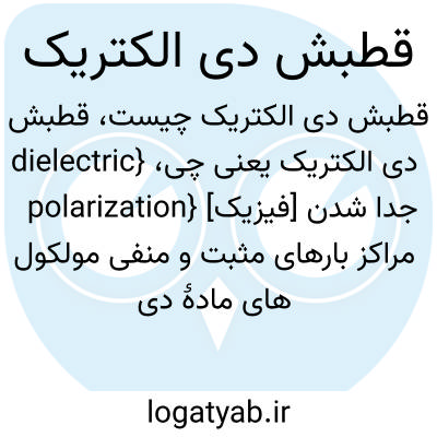 {dielectric polarization} [فیزیک] جدا شدن مراکز بارهای مثبت و منفی مولکول های مادۀ دی الکتریکی و تولید دوقطبی های الکتریکی در جهت میدان الکتریکی خارجی اعمال شده