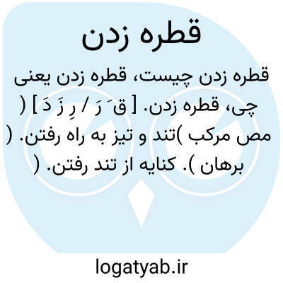 ( مصدر ) تردد کردن رفتن. یا قطره زدن بر ( به )... ریختن باریدن: در راه عشق قطره بمژگان زدم چو اشک نعل از برای پی غلطی واژگون زنند یا قطره زدن در... تیز رفتن دویدن.